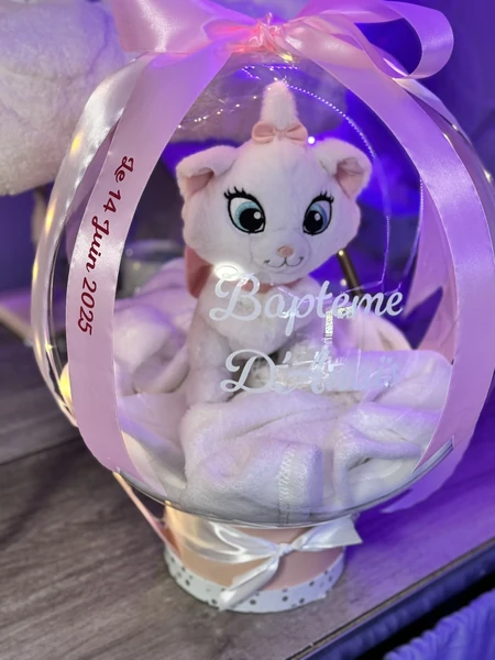 Tous les ballons-bulles sont personnalisables avec la Cricut. Nous proposons de nombreuses couleurs de rubans, pétales, plumes et doudous tout doux, etc.